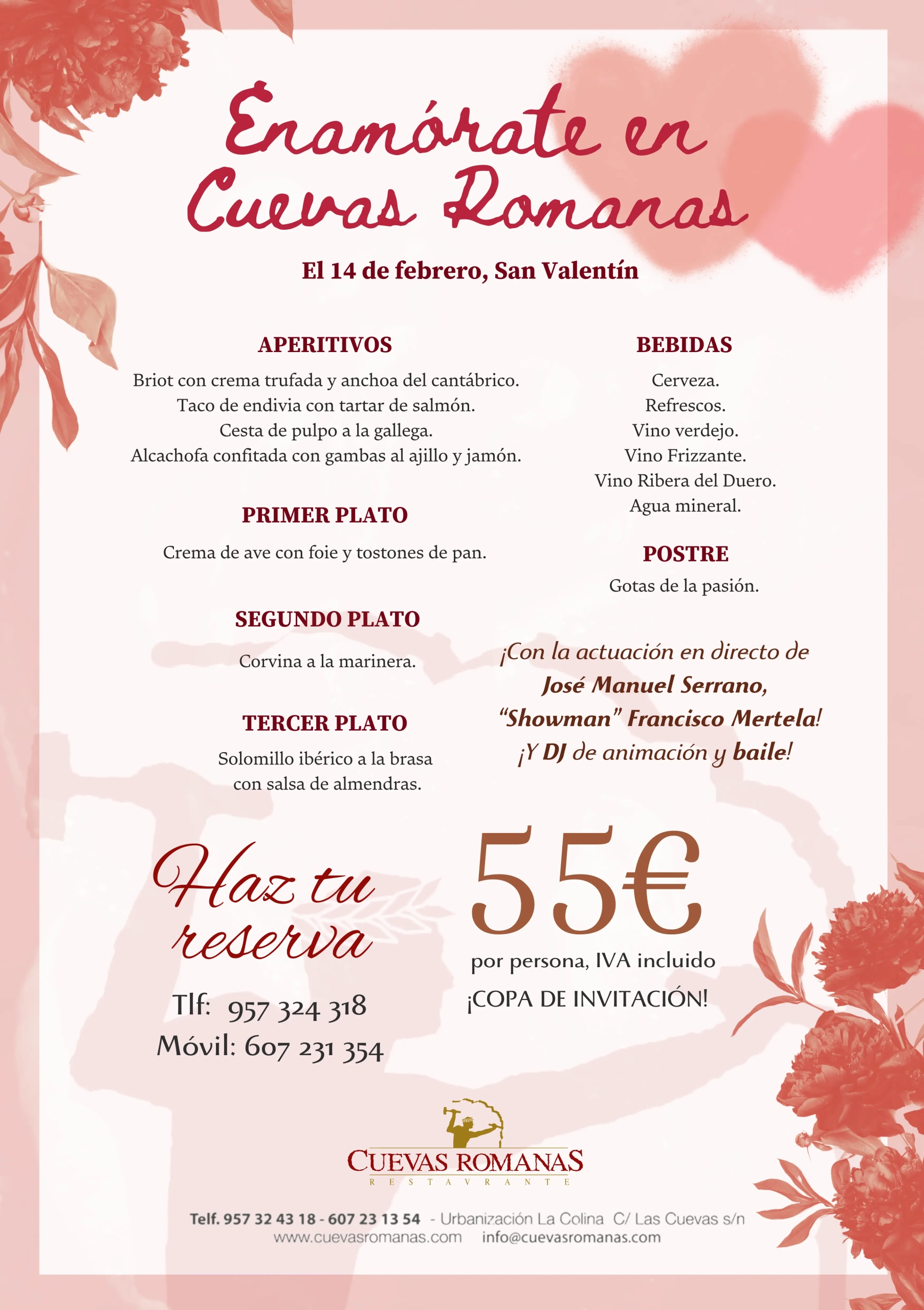 En Restaurante Cuevas Romanas celebramos contigo los momentos que de verdad importan, y San Valentín es uno de ellos.